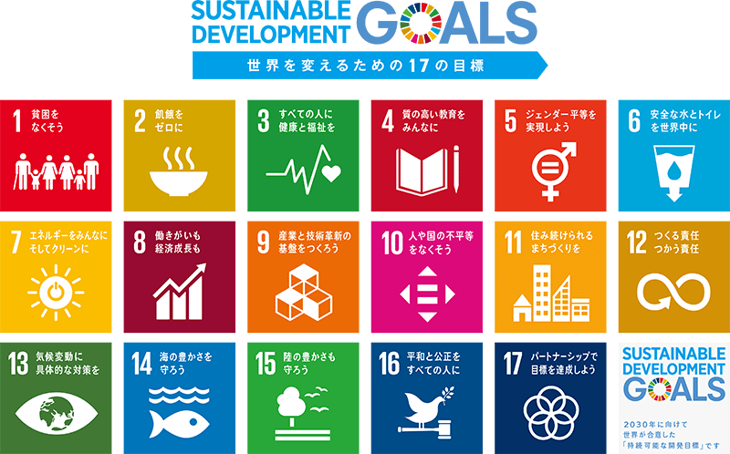SDGs(エス・ディー・ジーズ)とは? SDGs(エス・ディー・ジーズ)とは "Sustainable Development Goals(持続可能な開発目標)" の略称。 2015年9月...